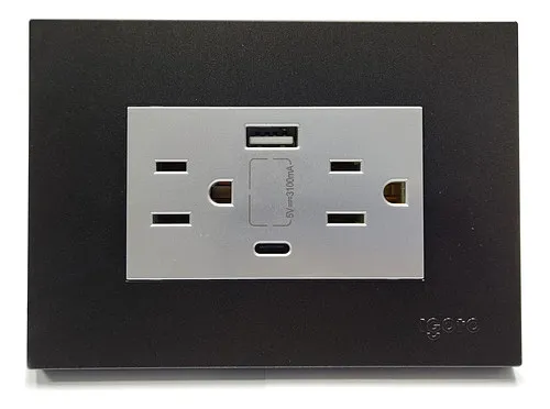 Vista rápida [Z105/2U-C-B] Igoto - Toma Corriente con Tierra + USB y Tipo C Serie Z [Negro] US$ 52.99