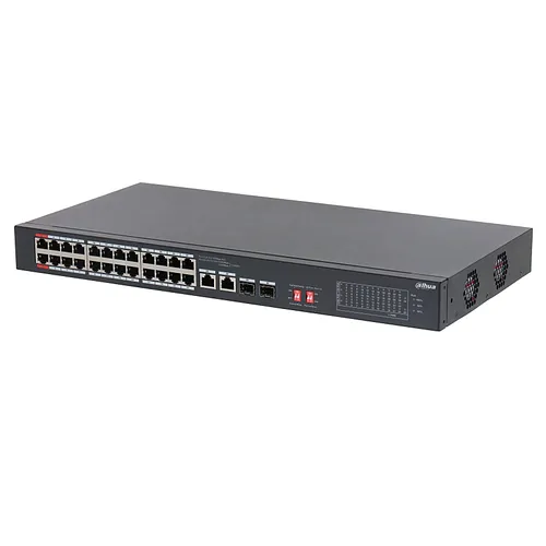 Vista rápida [DH-S3226-24ET-240] Dahua - Switch PoE para Montaje en Rack de 26 Puertos con 24 Puertos PoE (10/100 Mbps) 2 Puertos Uplink (Gigabit) y 2 Puertos SFP (Gigabit) Carcasa Metálica Total PoE 240W [No Administrable] US$ 493.99