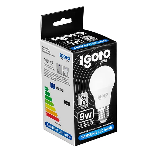 Vista rápida [IG-BLMS9W] Igoto - Bombillo LED Bulbo 9W 6500K Luz Fria Rosca E27 con sensor de movimiento US$ 6.70