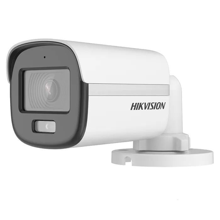 La cámara HD Bullet ColorVU 3K DS-2CE10KF0T-PFS de Hikvision es una solución de videovigilancia avanzada diseñada para ofrecer imágenes de alta calidad incluso en condiciones de baja iluminación. Con una resolución de 5MP, esta cámara proporciona una claridad excepcional y detalles nítidos, lo que la convierte en una opción ideal para la supervisión de áreas críticas. Su lente de 2.8mm permite un amplio campo de visión, facilitando la cobertura de espacios extensos con un solo dispositivo.