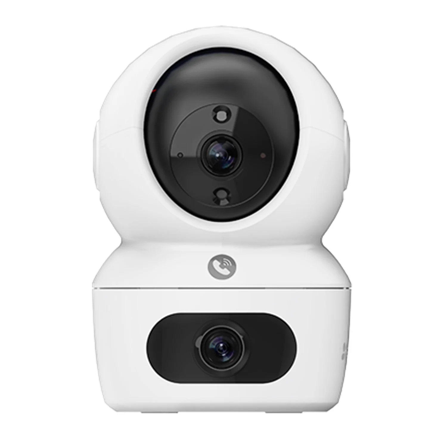 Una de las características más destacadas de este modelo es su capacidad de rotación horizontal y vertical, permitiendo un rango de visión completo sin puntos ciegos. Equipado con dos lentes, este dispositivo puede capturar diferentes ángulos al mismo tiempo, ofreciendo una cobertura amplia en áreas críticas. La conectividad Wi-Fi garantiza una instalación sencilla y rápida, eliminando la necesidad de cableado complicado.