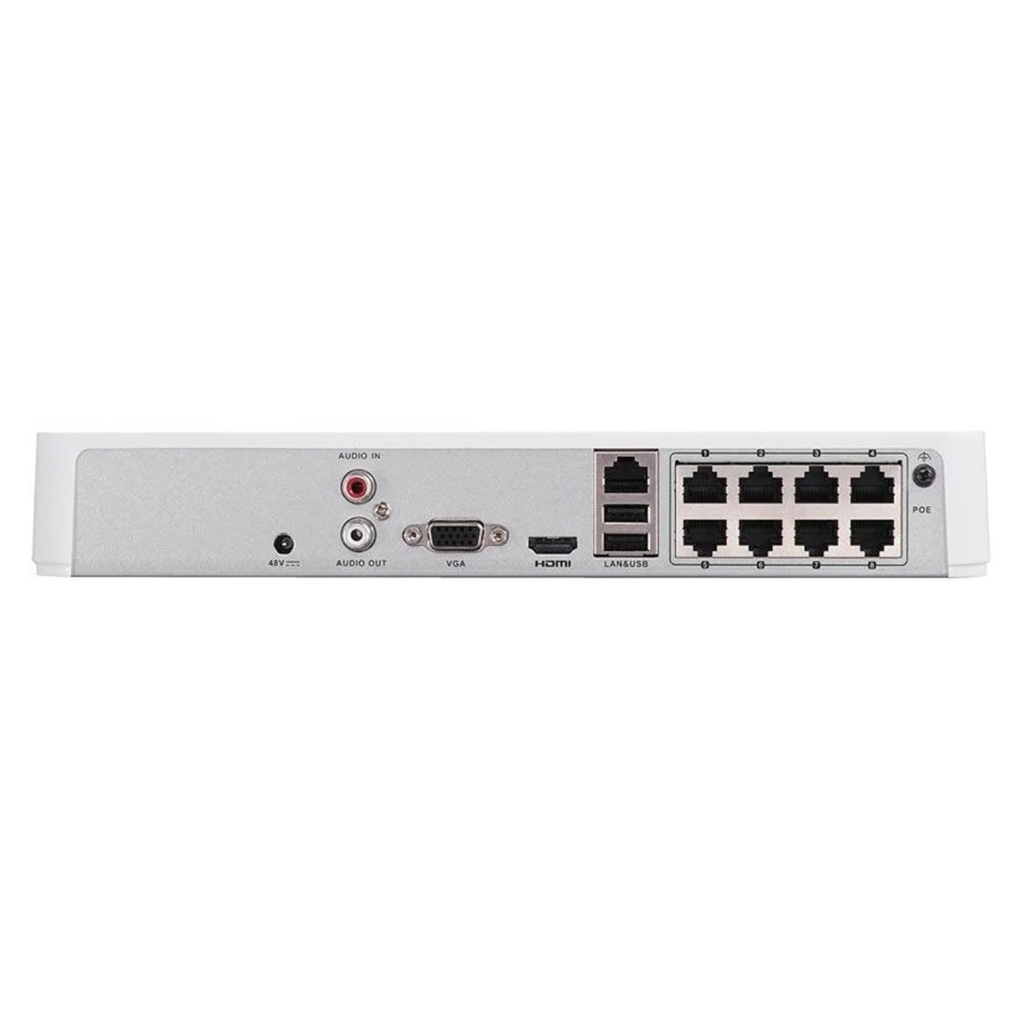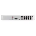 - Ocho puertos POE (Power Over Ethernet) que permiten la conexión y alimentación de cámaras IP directamente a través del cable de red, simplificando la instalación y reduciendo el uso de cables adicionales.