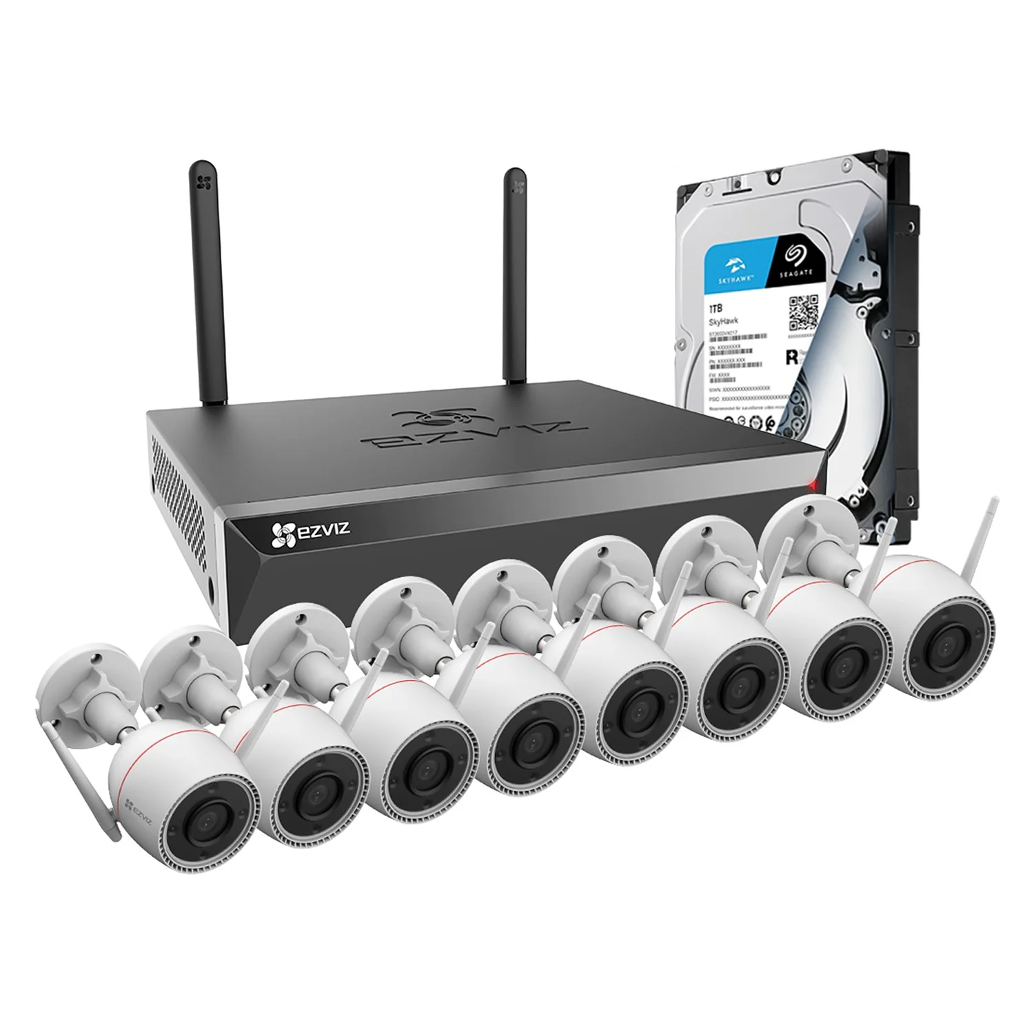 El kit de cámaras de seguridad inalámbricas Ezviz, modelo KITCAM15, ofrece una solución integral para la vigilancia y protección de espacios residenciales o comerciales. Este sistema incluye un NVR (grabador de video en red) de 8 canales, el modelo X5S, y ocho cámaras bullet C3TN con resolución HD de 3MP, además de un disco duro de 1TB para almacenamiento de grabaciones. Diseñado para proporcionar un rendimiento confiable y una fácil instalación, este kit es ideal para instaladores que buscan una solución robusta y efectiva para sus clientes.