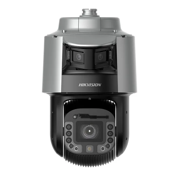 La cámara Hikvision DS-2SF8C442MXG-ELW/26(F0)(B) es una solución avanzada que combina un diseño de domo PTZ con capacidades de vigilancia panorámica. Equipado con un sensor de 4 megapíxeles y una cámara panorámica de 6 megapíxeles, este dispositivo ofrece una calidad de imagen excepcional en una amplia gama de condiciones de iluminación. Su potente zoom óptico de 42x permite capturar detalles finos a largas distancias, mientras que su capacidad de visión nocturna incluye un alcance de infrarrojos de hasta 300 metros y luz blanca de hasta 30 metros, garantizando una vigilancia eficaz tanto de día como de noche.
