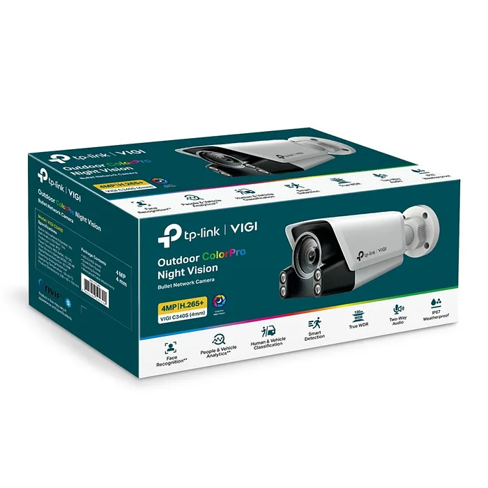 La cámara IP Vigi By TP-Link modelo C340S-4 es una solución avanzada para la seguridad y vigilancia, diseñada específicamente para ofrecer imágenes de alta definición gracias a su lente de 4 mm y su resolución de 4MP. Esta cámara tipo bullet se destaca por su rendimiento superior en diversas condiciones de iluminación, garantizando una vigilancia efectiva en entornos tanto interiores como exteriores.