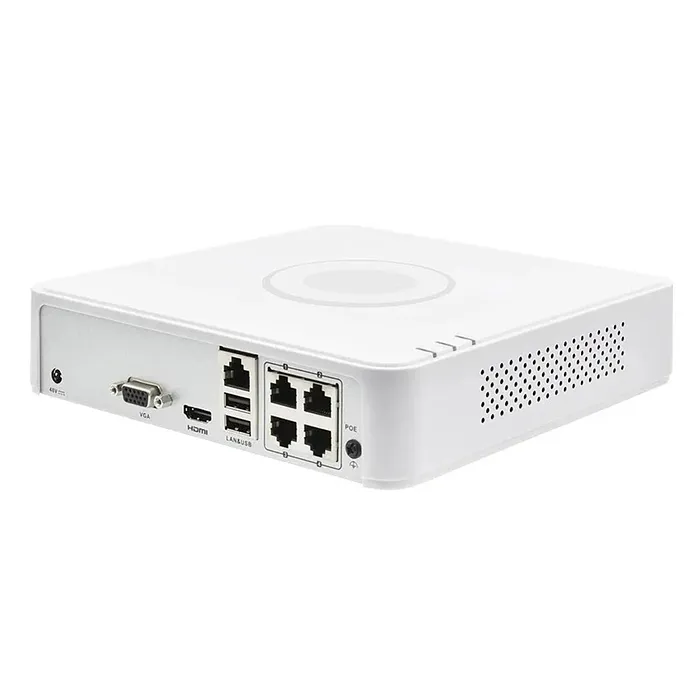 - 4 canales IP, compatibles con cámaras Hikvision y ONVIF.