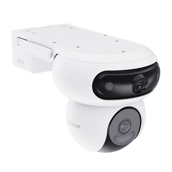 La HB90 Dual Kit de Ezviz combina dos cámaras motorizadas en un solo cuerpo, cada una con resolución 4MP (2K+), para ofrecer una cobertura visual completa sin puntos ciegos. Su diseño está pensado para exteriores, con batería recargable, panel solar de 8W incluido y funciones avanzadas de inteligencia artificial.