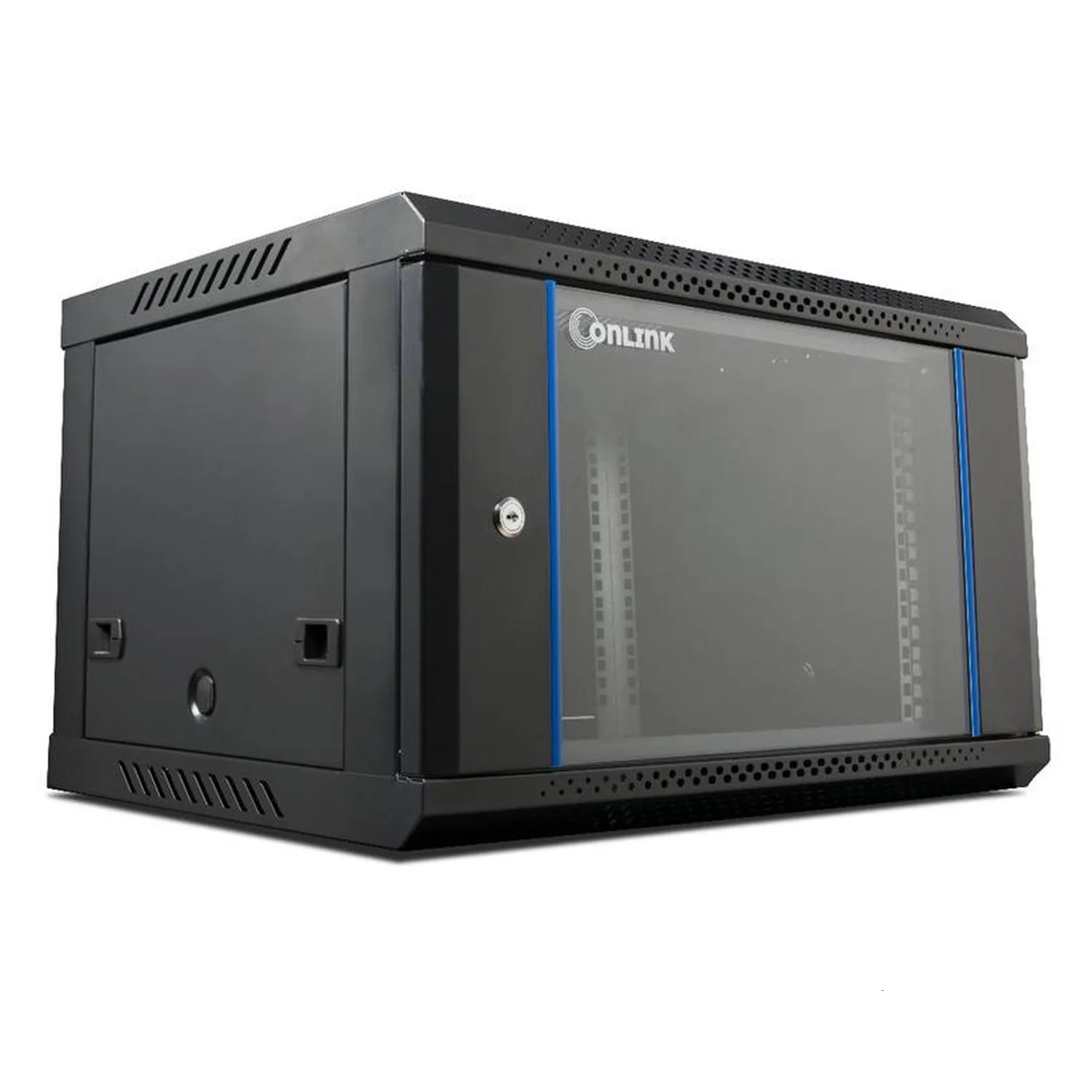 El rack de pared cerrado fijo Onlink WM6406 es una solución ideal para el montaje de equipos de telecomunicaciones y servidores en espacios reducidos. Con unas dimensiones de 600x450x368 mm, este rack proporciona un espacio de 6 unidades (U) para la instalación de hardware, asegurando una organización eficiente y un acceso fácil a los componentes.