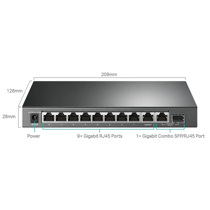 El TL-SG1210MPE destaca por su enfoque en la eficiencia energética y la facilidad de uso. Los 10 puertos Gigabit operan a velocidades de hasta 1000 Mbps, lo que permite una transmisión de datos fluida y sin interrupciones. Los puertos PoE cumplen con el estándar 802.3af/at, permitiendo la alimentación de dispositivos como cámaras IP, puntos de acceso y teléfonos VoIP sin necesidad de un adaptador de corriente adicional. La capacidad PoE total del switch es de 110W, lo cual es suficiente para cubrir la mayoría de las aplicaciones de red en entornos comerciales.