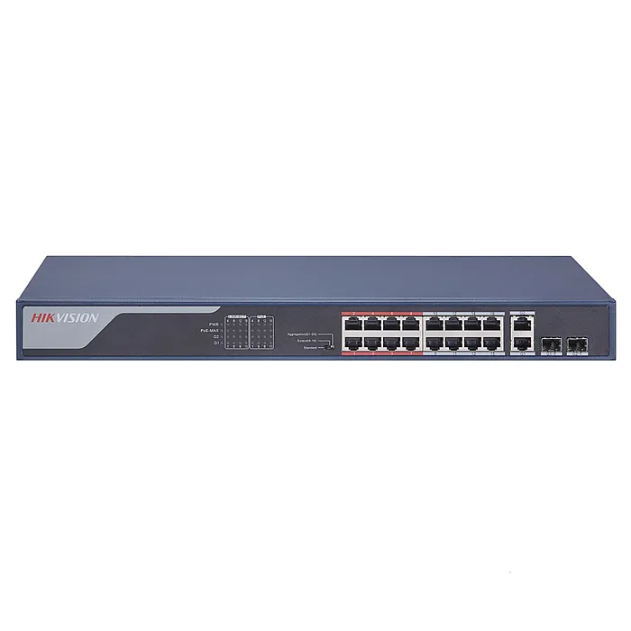 El Switch POE 16 Puertos 10/100 Mbps + 2 Puertos Gigabit + 2 Puertos SFP DS-3E0318P-E de Hikvision es una solución avanzada para la conectividad de redes, diseñada específicamente para satisfacer las necesidades de instalación en entornos empresariales y de seguridad. Este dispositivo combina la funcionalidad de un switch Ethernet con la capacidad de proporcionar alimentación a través de Ethernet (PoE), lo que lo convierte en una opción ideal para la expansión de redes que requieren alimentación para dispositivos como cámaras de vigilancia, puntos de acceso y teléfonos VoIP.