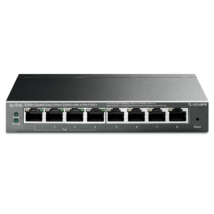El TP-Link TL-SG108PE es un switch de escritorio inteligente que combina un rendimiento excepcional con una amplia funcionalidad, diseñado para satisfacer las necesidades de empresas y usuarios individuales que buscan optimizar sus redes. Con 8 puertos Gigabit Ethernet, de los cuales 4 son puertos Power over Ethernet (POE), este dispositivo permite la conexión y alimentación de diversos equipos de red, facilitando la instalación y la gestión de dispositivos en entornos profesionales.