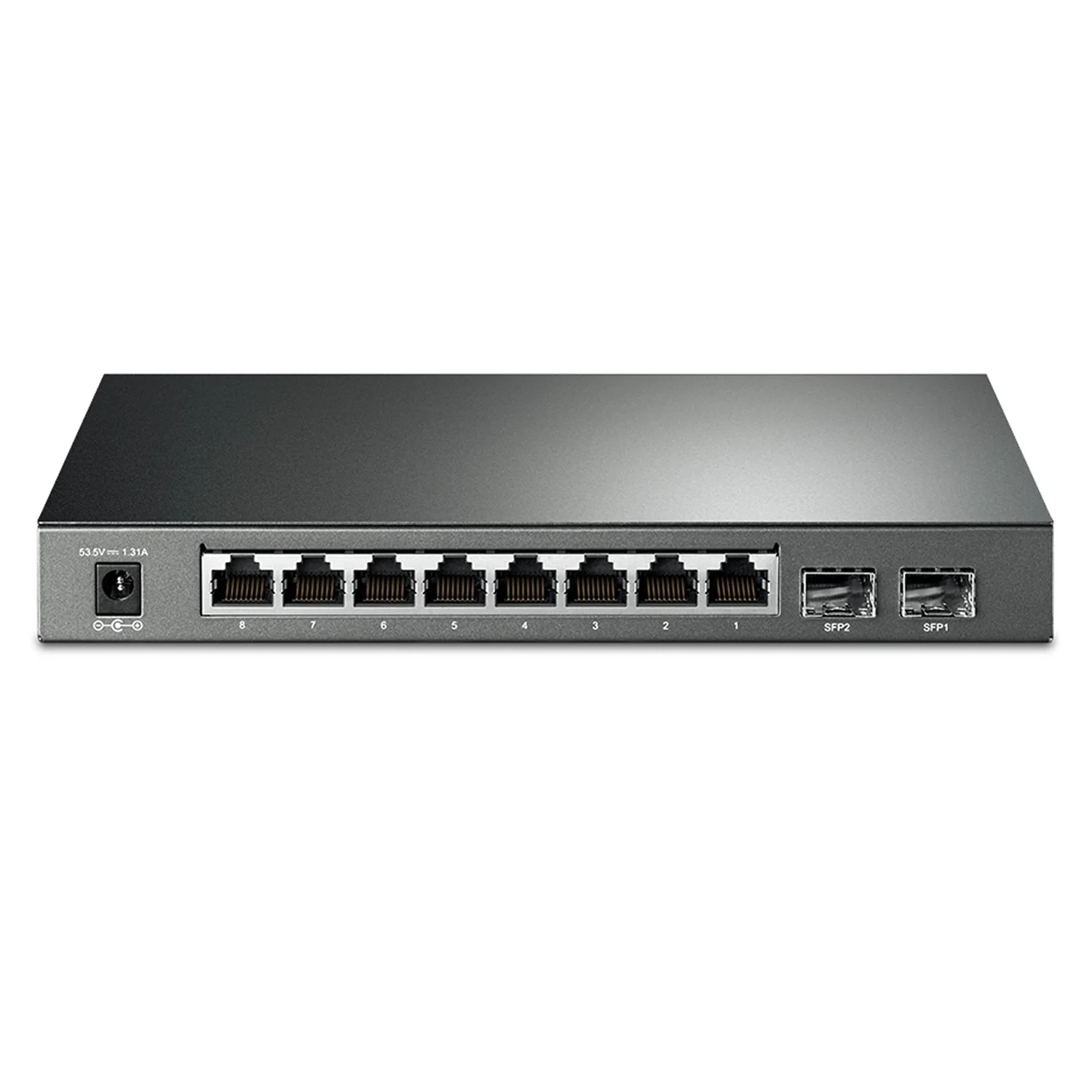 - Puertos: 8 puertos 10/100/1000 Mbps RJ45 con soporte PoE y 2 puertos SFP para conexión de fibra.