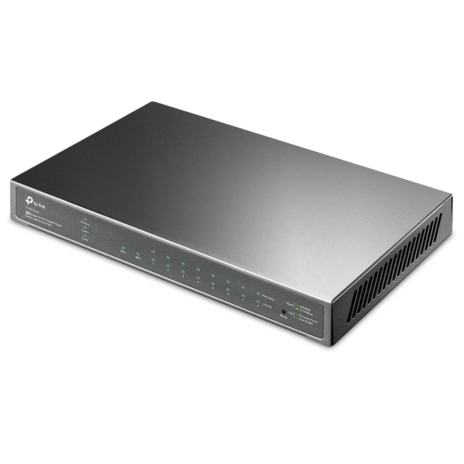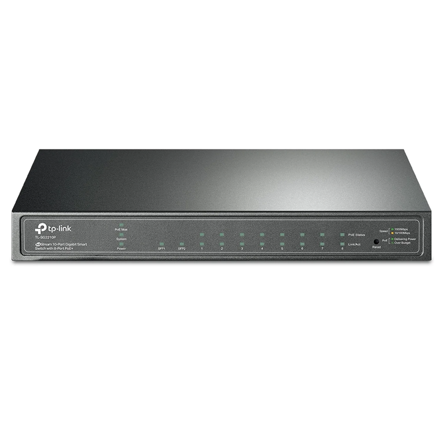 El TP-Link TL-SG2210P es un switch de escritorio inteligente diseñado para ofrecer una solución de red robusta y eficiente. Con 8 puertos Gigabit Ethernet PoE (Power over Ethernet) y 2 puertos SFP (Small Form-Factor Pluggable), este switch es ideal para pequeñas y medianas empresas que requieren un rendimiento elevado y una gestión avanzada de la red. Los puertos PoE permiten la transmisión de energía y datos a dispositivos compatibles como cámaras IP, teléfonos VoIP y puntos de acceso inalámbricos, eliminando la necesidad de fuentes de alimentación adicionales y simplificando la instalación de estos dispositivos.