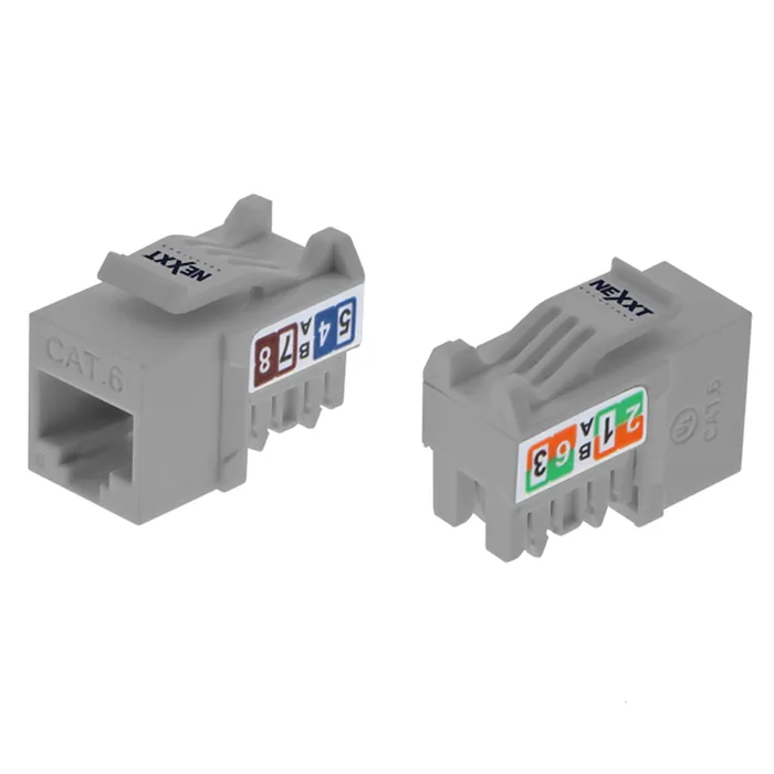 El conector Jack Coupler RJ-45 Tipo 110 de la categoría 6 en color gris, modelo [AW120NXT27] de Nexxt, es una solución profesional diseñada para facilitar la interconexión de cables de red en instalaciones de telecomunicaciones. Este coupler se utiliza para unir dos cables de red RJ-45, permitiendo extender la longitud de la conexión de manera eficiente y sin pérdida de calidad en la señal.