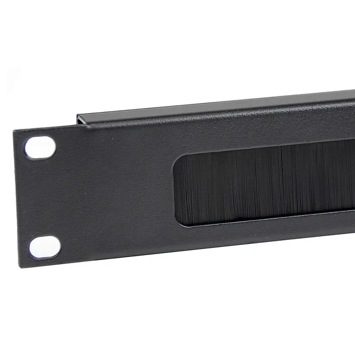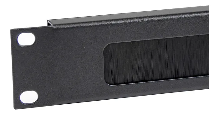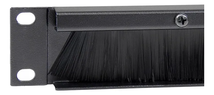 El panel está equipado con un cepillo horizontal que permite el paso de cables de manera ordenada y sin interferencias, minimizando la acumulación de polvo y suciedad en el interior del rack. La estructura metálica del panel proporciona una excelente protección contra impactos, mientras que su acabado en pintura electrostática asegura una resistencia adecuada a la corrosión y desgaste. Incluye todos los tornillos y tuercas necesarios para su instalación, lo que facilita su montaje y asegura que esté firmemente anclado al rack.