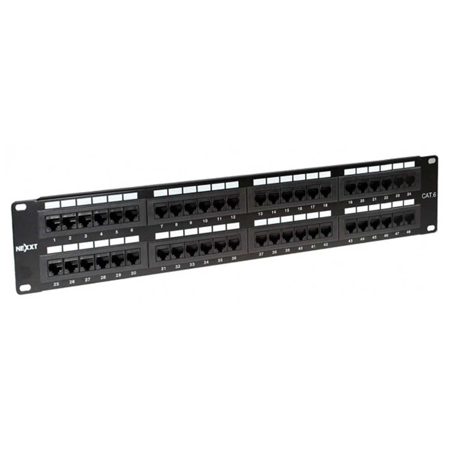 El panel cuenta con 48 puertos, permitiendo la conexión de múltiples dispositivos en una sola unidad. Esto facilita la expansión de redes en el futuro y simplifica el proceso de cableado.