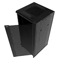 El rack cuenta con una estructura de acero de alta resistencia, lo que garantiza la durabilidad y estabilidad requeridas en entornos de trabajo exigentes. Su diseño cerrado asegura una adecuada protección contra el polvo y el acceso no autorizado.