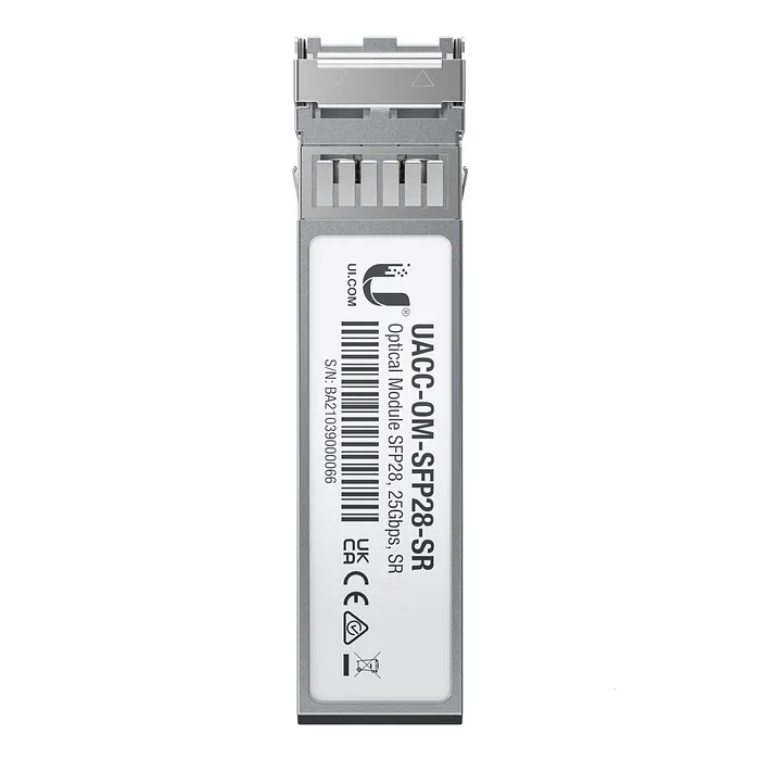 El transceptor de fibra óptica multimodo UACC-OM-SFP28-SR de Ubiquiti es una solución avanzada diseñada para satisfacer las demandas de conectividad de alta velocidad en entornos de red exigentes. Este transceptor SFP28 permite una transmisión de datos de hasta 25 Gbps, lo que lo convierte en una opción ideal para aplicaciones que requieren un ancho de banda elevado y un rendimiento confiable. Equipado con dos conectores LC, el UACC-OM-SFP28-SR es compatible con la mayoría de los equipos de red modernos y es fácil de integrar en configuraciones existentes.