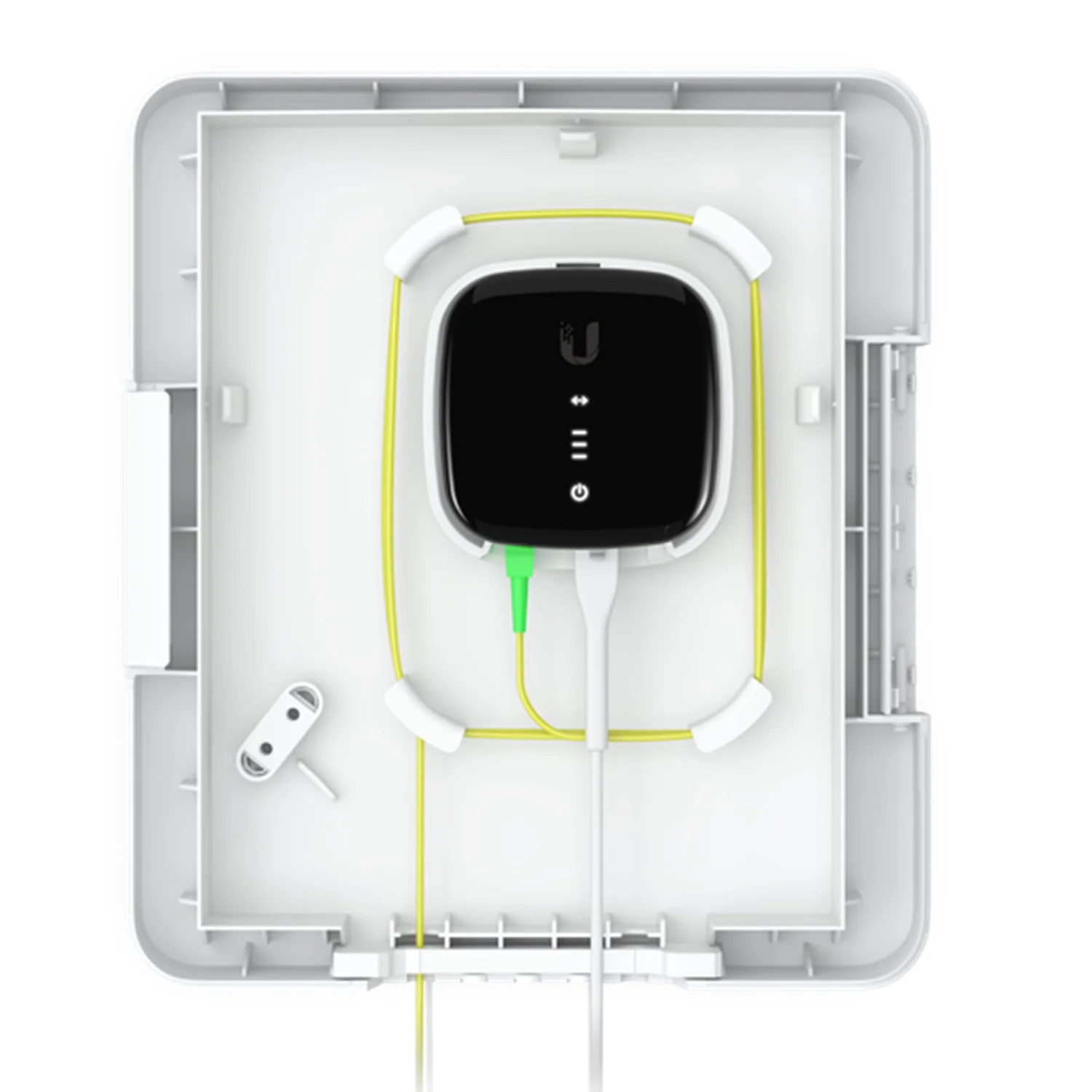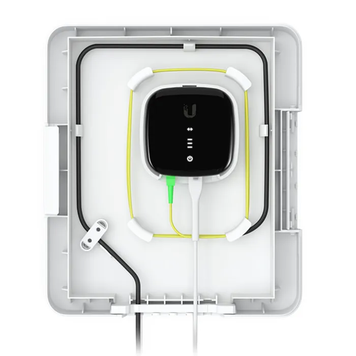 La Caja de Terminales Exterior UFiber de Ubiquiti, modelo UF-TERMINAL-BOX, es una solución de alta calidad diseñada para la instalación y gestión de fibra óptica en entornos exteriores. Este producto ha sido desarrollado para proteger de manera efectiva las conexiones de fibra y garantizar un rendimiento óptimo, incluso en condiciones climáticas adversas. Su diseño robusto y funcionalidad avanzada hacen de esta caja una opción ideal para instaladores que buscan un producto confiable y duradero.