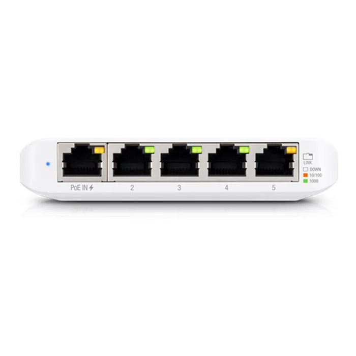 El Switch UniFi Administrable Compacto de 5 Puertos 10/100/1000 Mbps, modelo USW-FLEX-MINI de Ubiquiti, es una solución de red avanzada diseñada para entornos que requieren flexibilidad y un alto rendimiento. Este switch compacto se adapta a diversas aplicaciones, proporcionando conectividad a dispositivos de red en entornos empresariales, comerciales y residenciales. Su diseño eficiente y funcional lo convierte en una opción ideal para instaladores que buscan robustez y versatilidad en sus implementaciones.