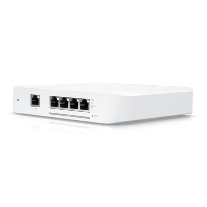 El USW-FLEX-XG cuenta con cinco puertos Ethernet, de los cuales uno proporciona PoE de entrada y cuatro ofrecen PoE de salida. Este diseño permite una integración rápida y efectiva de dispositivos que requieren alimentación a través del cable de red, simplificando la instalación y reduciendo la necesidad de adaptadores adicionales. Entre las características más destacadas se incluyen: