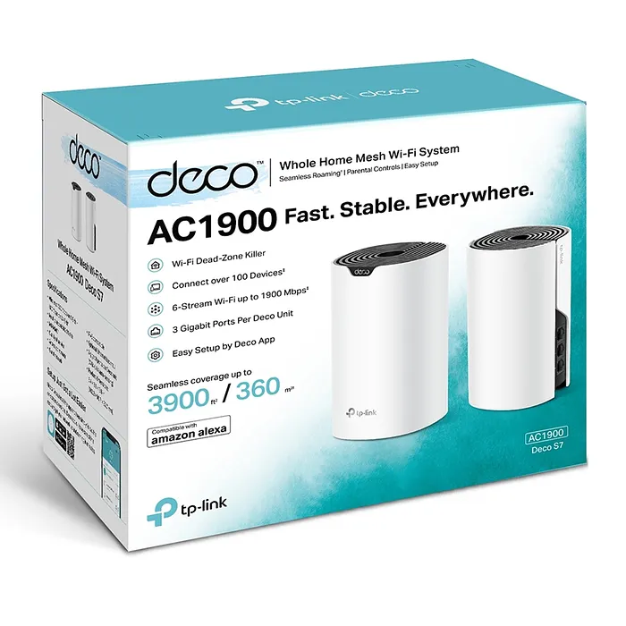 El DECO-S7 se destaca por su arquitectura de doble banda que proporciona una velocidad combinada de hasta 1900 Mbps, con 1300 Mbps en la banda de 5 GHz y 600 Mbps en la banda de 2.4 GHz. Su tecnología Mesh permite que múltiples unidades trabajen en conjunto para eliminar zonas muertas y garantizar una experiencia de usuario fluida en toda el área de cobertura. Además, cuenta con la función de roaming sin interrupciones, lo que significa que los dispositivos se conectan automáticamente a la unidad con la mejor señal sin necesidad de intervención manual.