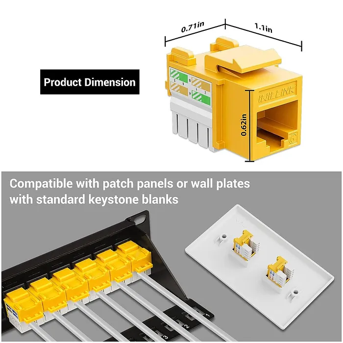 El conector Keystone Jack Coupler RJ-45 Categoría 6 de Iwillink, modelo IWI-KRJ-C6-YELLOW, es una solución de alta calidad diseñada para satisfacer las demandas de conectividad en instalaciones de redes de datos. Este producto está especialmente diseñado para proporcionar un rendimiento óptimo en aplicaciones de red de alta velocidad, asegurando la estabilidad y eficiencia en la transmisión de datos.
