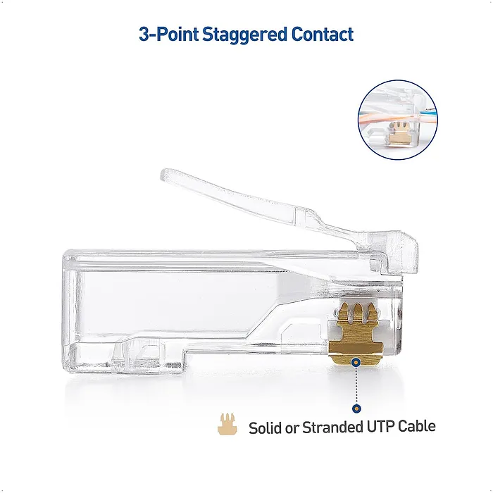 El conector modular RJ45 de categoría 6 pasante de Cable Matters es una opción técnica y versátil para cualquier instalador que busque eficiencia, facilidad de uso y un rendimiento de red excepcional. Con su diseño optimizado y la capacidad de manejar velocidades de datos de hasta 10 Gbps, este producto es ideal para una variedad de aplicaciones de red moderna. Elegir los conectores RJ45 de Cable Matters asegura que cada instalación no solo cumpla con los estándares más estrictos, sino que también se adapte a las necesidades cambiantes del entorno tecnológico actual