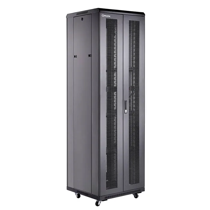 El Rack de Piso Cerrado Onlink A36837-MDM es una solución robusta y versátil para el almacenamiento y la organización de equipos de red y servidores. Con unas dimensiones de 600 mm de ancho, 800 mm de profundidad y 1832 mm de altura, este rack ofrece un espacio de 37U, ideal para albergar una amplia variedad de dispositivos, desde servidores hasta equipos de telecomunicaciones. Su diseño cerrado, combinado con una puerta frontal de malla y dobles puertas traseras de malla, permite una adecuada ventilación, contribuyendo a mantener temperaturas óptimas de operación.