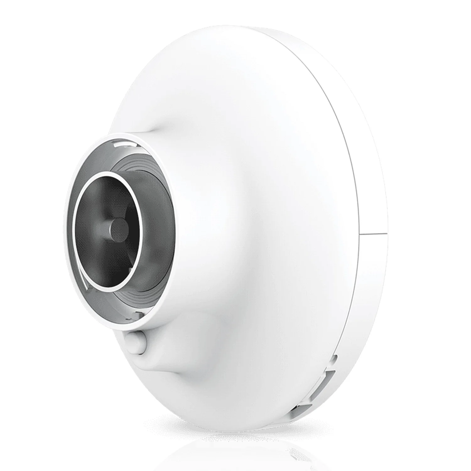 Las dimensiones del producto son de 32 x 32 x 4.3 cm, con un peso de 1.3 kg, lo que facilita su instalación en diferentes tipos de estructuras. Se alimenta a través de Power over Ethernet (PoE), lo que simplifica la instalación al permitir que la energía y los datos se transmitan a través de un solo cable Ethernet.