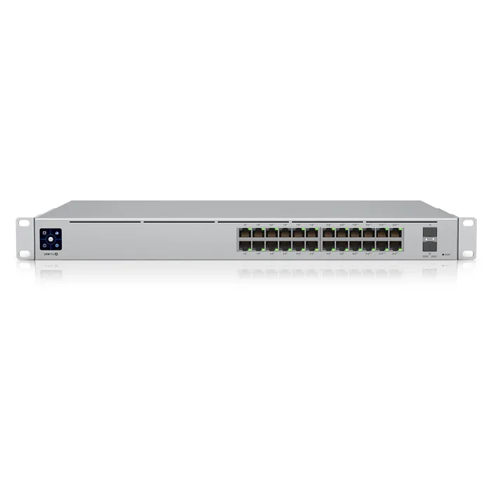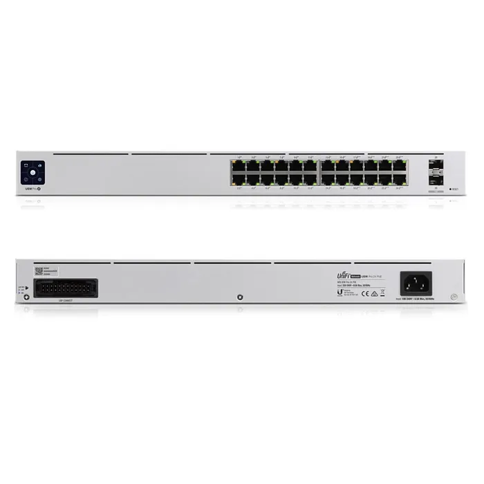 El Switch Unifi Ubiquiti USW-PRO-24-POE es un dispositivo de red de alto rendimiento diseñado específicamente para entornos empresariales que requieren una infraestructura de red robusta y escalable. Este switch de Capa 3 Gigabit cuenta con 24 puertos Ethernet que soportan PoE (Power over Ethernet) según los estándares 802.3at y 802.3bt, lo que lo convierte en una solución ideal para alimentar dispositivos como cámaras IP, puntos de acceso y teléfonos VoIP. Además, incluye 2 puertos SFP que permiten conexiones de alta velocidad a través de fibra óptica, con opciones de 1G y 10G, para facilitar la interconexión con otros dispositivos de red.