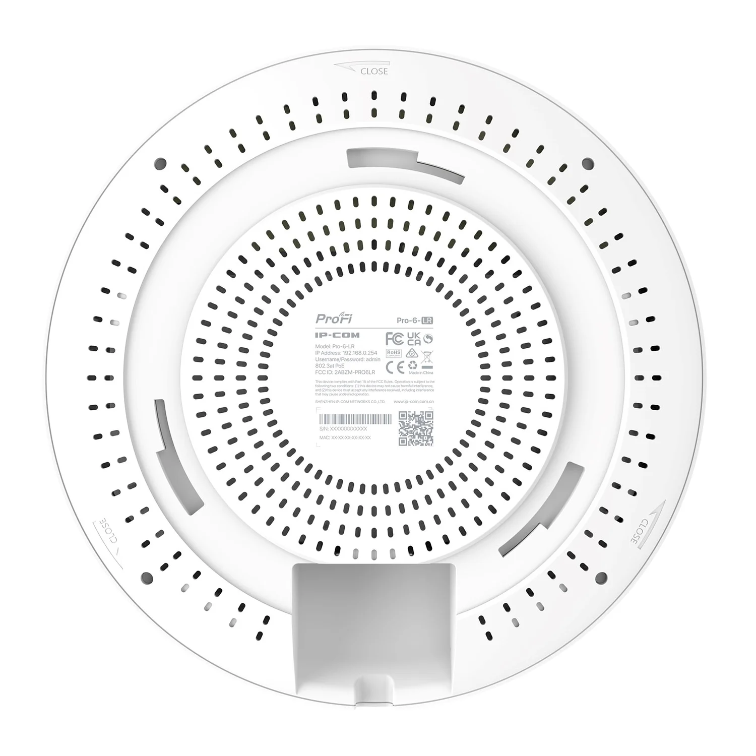 El IP-COM Pro-6-LR es un punto de acceso inalámbrico de montaje en techo que ofrece conectividad de red sin interrupciones y de alta velocidad. Diseñado para entornos comerciales y empresariales, este dispositivo opera en dos bandas simultáneamente: 2.4 GHz y 5 GHz, proporcionando una capacidad de transferencia de datos eficiente y estable. Con un rendimiento de hasta 1 Gbps, el Pro-6-LR es ideal para aplicaciones que requieren un ancho de banda alto, como videoconferencias, streaming de alta definición y acceso a aplicaciones en la nube.