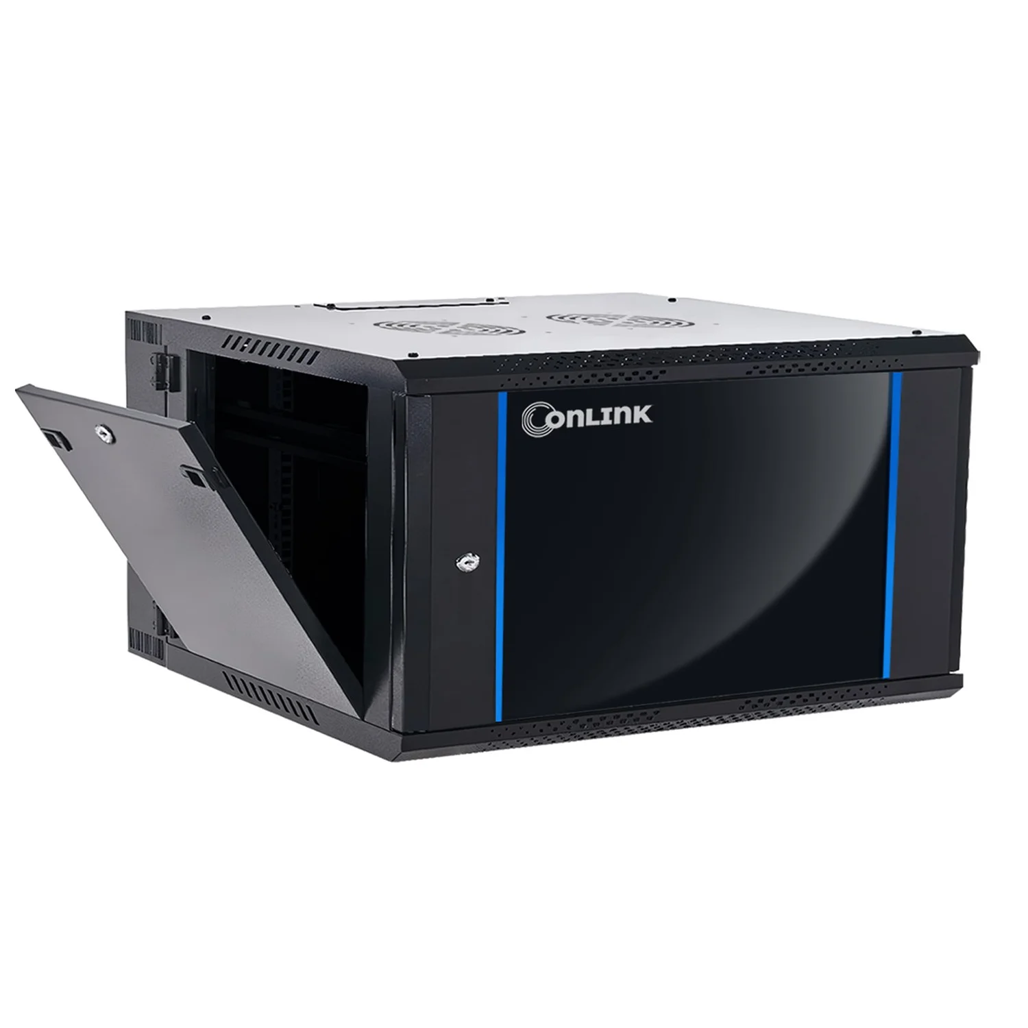 El Rack de Pared Cerrado Abatible 4U de Onlink, modelo WMG6504-550, es una solución diseñada para el montaje eficiente y seguro de equipos en espacios reducidos. Con unas dimensiones de 600x550x280mm, este rack ofrece un equilibrio ideal entre capacidad y compactibilidad, permitiendo la instalación de diversos dispositivos en entornos como oficinas, salas de servidores y comercios.