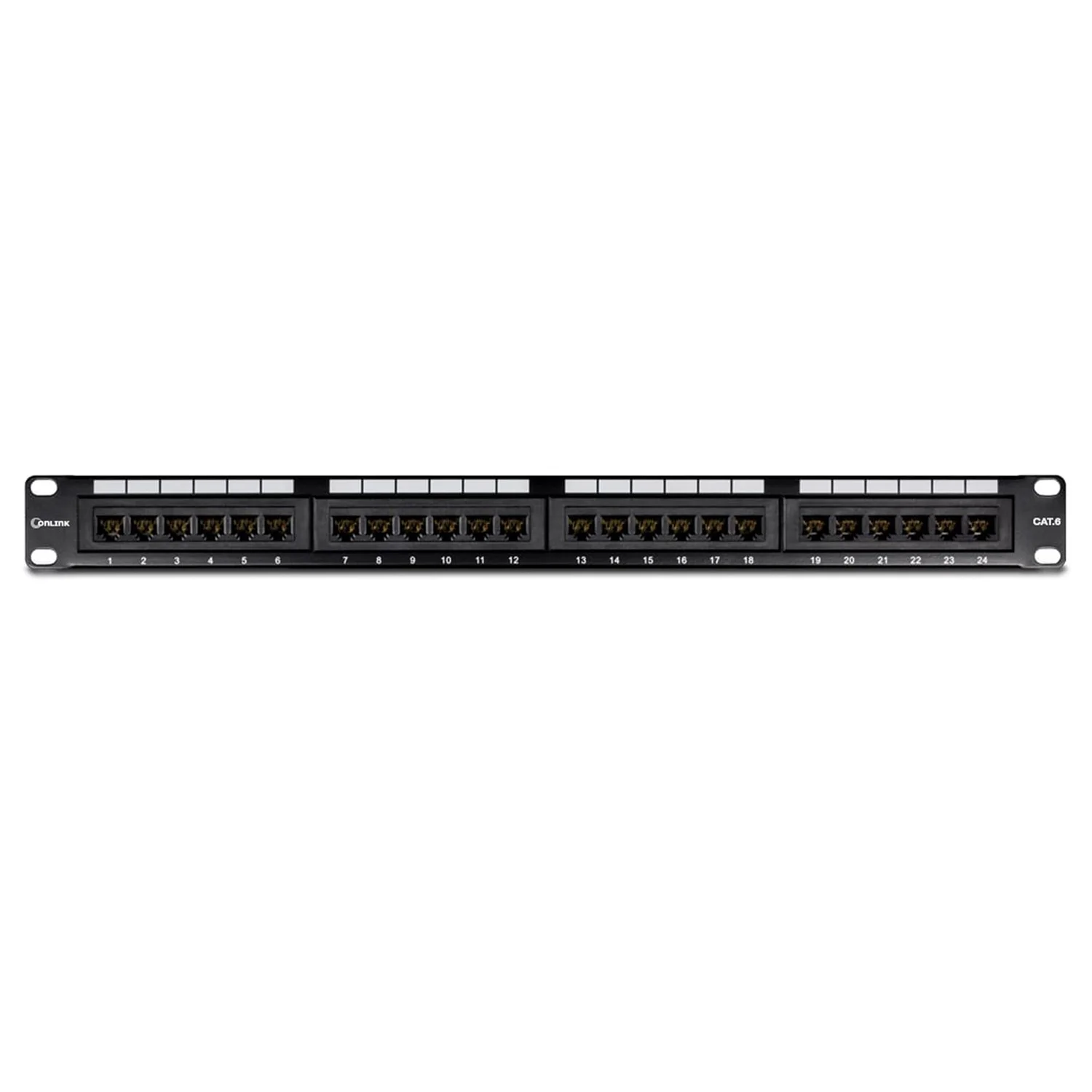 El Patch Panel de 24 Puertos Onlink, modelo PN-UTP624, es una solución de conectividad de alta calidad diseñada para entornos de red que requieren una organización y gestión eficientes de cables. Este patch panel está diseñado para ser montado en racks de 19 pulgadas y ocupa un espacio de 1U, lo que lo convierte en una opción ideal para instalaciones donde el espacio es limitado. Su construcción robusta y su diseño pensado para facilitar la instalación y el mantenimiento son características destacadas que lo convierten en un producto confiable para instaladores profesionales.