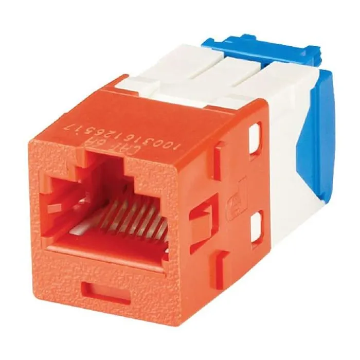 El conector Jack Coupler está fabricado con materiales de alta calidad que garantizan durabilidad y resistencia a la corrosión. Su diseño modular permite una fácil instalación y mantenimiento, facilitando la integración en infraestructuras de red existentes. El color rojo no solo proporciona una identificación clara dentro de los entornos de cableado, sino que también ayuda a evitar confusiones durante la instalación y el mantenimiento. Este acoplador cumple con las normas TIA/EIA para la transmisión de datos, asegurando un rendimiento óptimo en diversas aplicaciones de red.