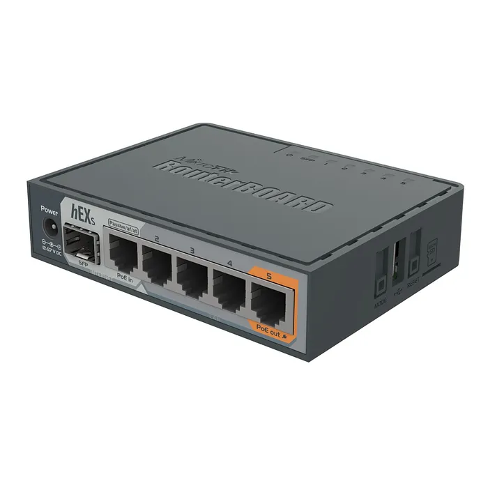 El Mikrotik hEX S (RB760iGS) es un router compacto diseñado específicamente para pequeñas y medianas empresas, así como para usuarios avanzados que buscan un dispositivo de alto rendimiento en un formato accesible. Este router combina un diseño robusto con capacidades avanzadas, lo que lo convierte en la solución ideal para gestionar redes de manera eficiente y confiable.
