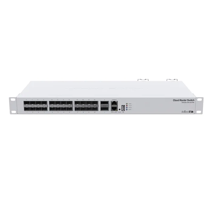 El CRS326-24S+2Q+RM de Mikrotik es un potente Cloud Router Switch diseñado para satisfacer las necesidades de red de alta capacidad y eficiencia. Este dispositivo combina las funciones de un switch y un router en un solo chasis, lo que lo convierte en una solución ideal para entornos empresariales y datacenters. Con un robusto sistema RouterOS de nivel 5, el CRS326 ofrece una amplia gama de características avanzadas y una flexibilidad excepcional, permitiendo a los instaladores crear redes personalizadas y optimizadas.