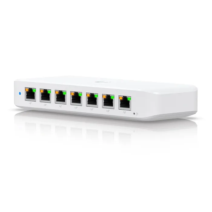 El Switch PoE compacto USW-Ultra-210W de Ubiquiti es una solución avanzada para redes de alto rendimiento, diseñado específicamente para satisfacer las exigencias de los instaladores profesionales. Este switch de capa 2 está equipado con 8 puertos GbE, de los cuales 7 permiten la alimentación a través de Ethernet (PoE+) y 1 puerto está destinado a la entrada de PoE++. La versatilidad y las características técnicas de este dispositivo lo convierten en una opción ideal para la implementación de redes en entornos comerciales y residenciales.
