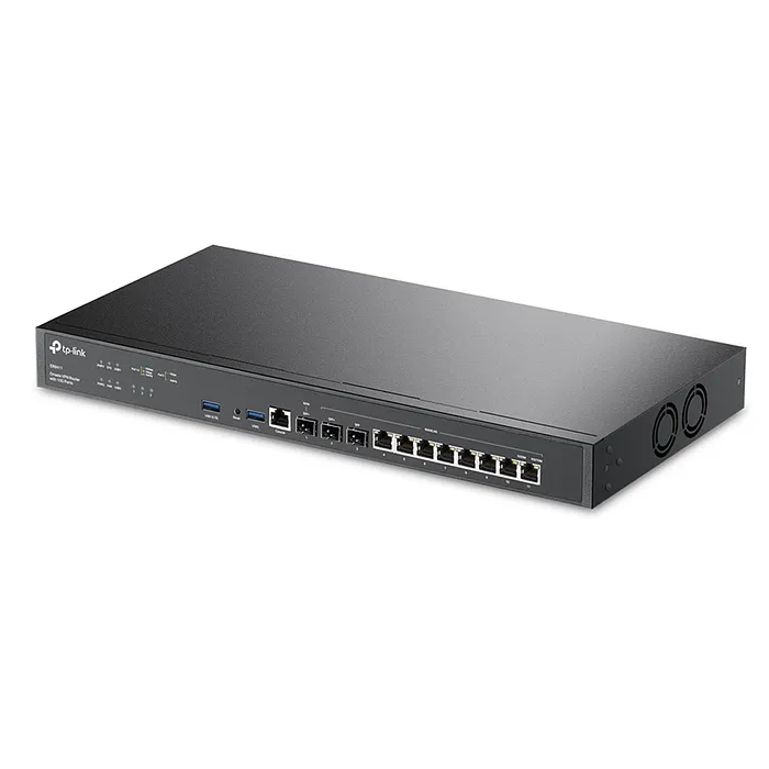 El TP-Link ER8411 es un router VPN de alto rendimiento diseñado para satisfacer las necesidades de redes empresariales modernas, brindando soluciones eficientes y seguras para la gestión de datos. Este dispositivo de la serie Omada se destaca no solo por su capacidad de procesamiento, sino también por su extensiva conectividad y características avanzadas que lo convierten en una opción ideal para instalaciones complejas y de alto tráfico.