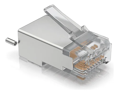 El conector de protección contra sobretensiones RJ45 de Ubiquiti, modelo UISP-Connector-SHD, es una solución avanzada diseñada para proteger las instalaciones de red contra sobretensiones y picos de voltaje. Este producto es ideal para instalaciones en entornos donde se presentan condiciones climáticas adversas o en áreas propensas a descargas eléctricas. Cada paquete contiene 100 unidades, lo que lo convierte en una opción conveniente y económica para empresas de instalación y mantenimiento de redes.