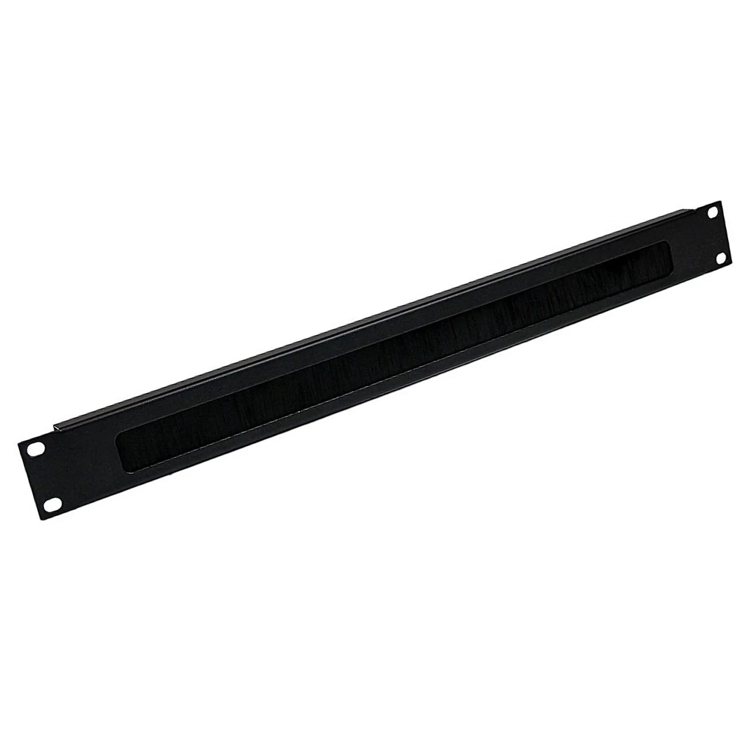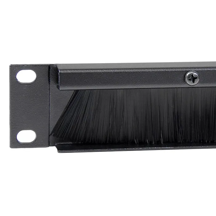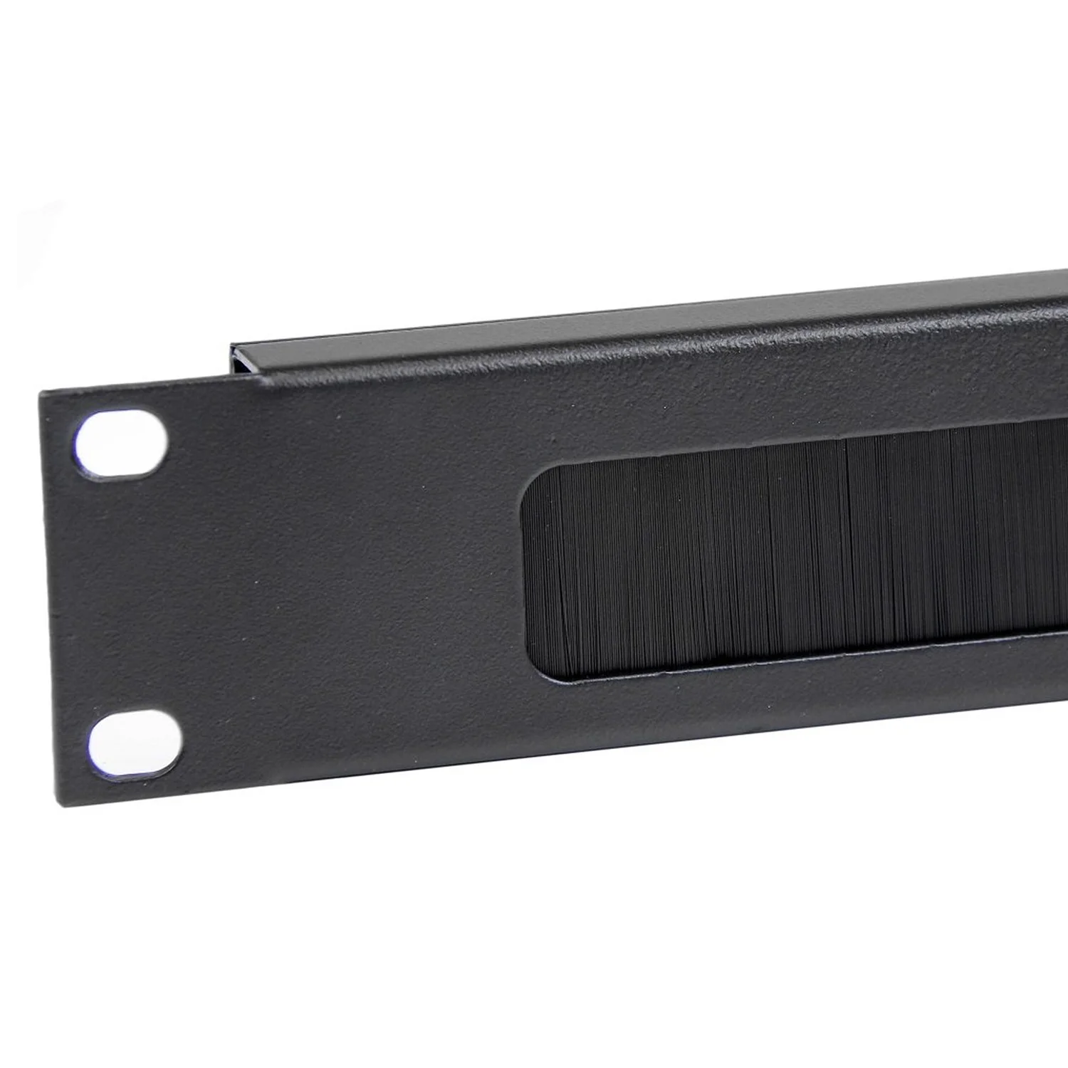 El panel cuenta con un diseño de cepillo que permite el paso de cables de diversas dimensiones, facilitando la entrada y salida de los mismos sin comprometer la integridad de la instalación. Esta característica es fundamental para mantener un flujo de trabajo ordenado, ya que evita que los cables se enreden o se deterioren. Adicionalmente, su perfil bajo ayuda a maximizar el espacio dentro del rack.