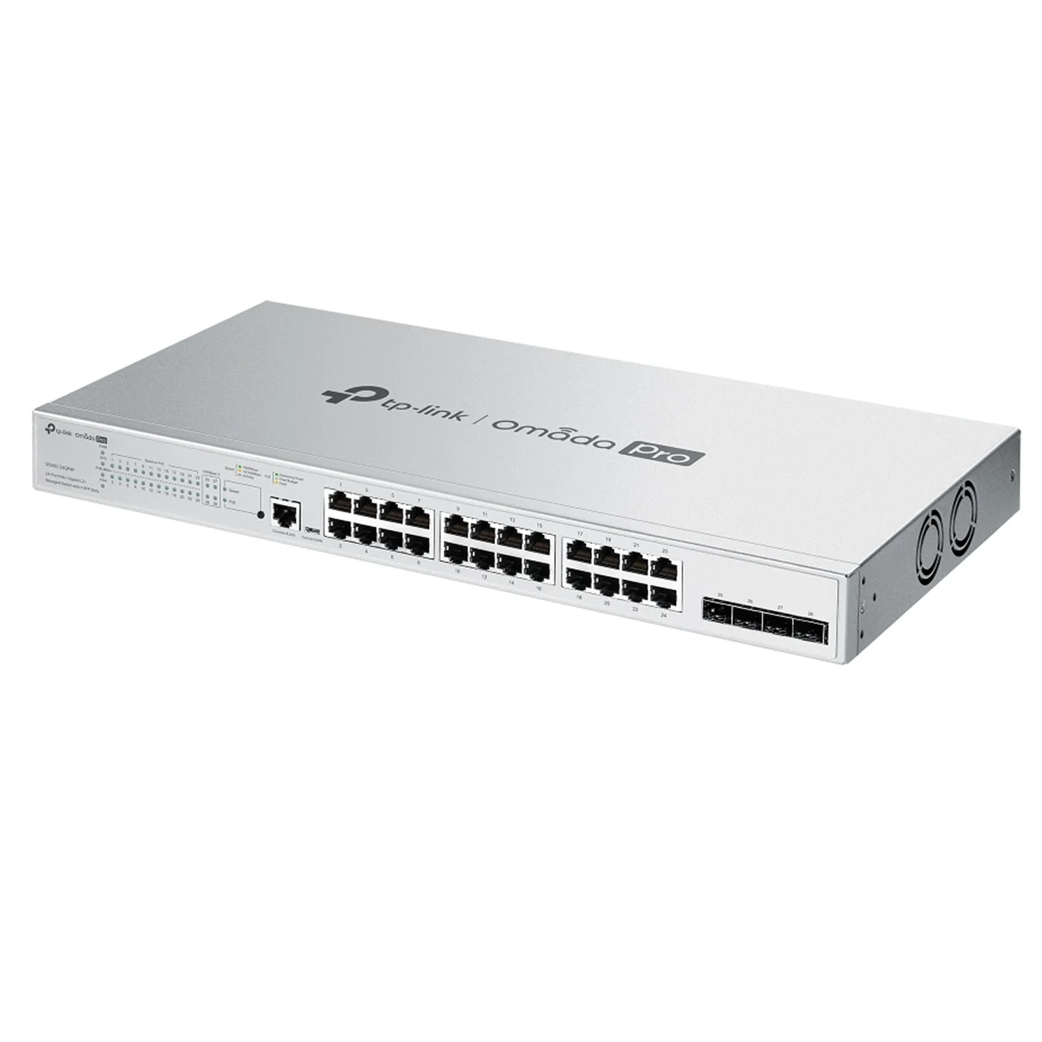 - **Puertos**: 24 puertos 10/100/1000 Mbps PoE+, 4 puertos SFP