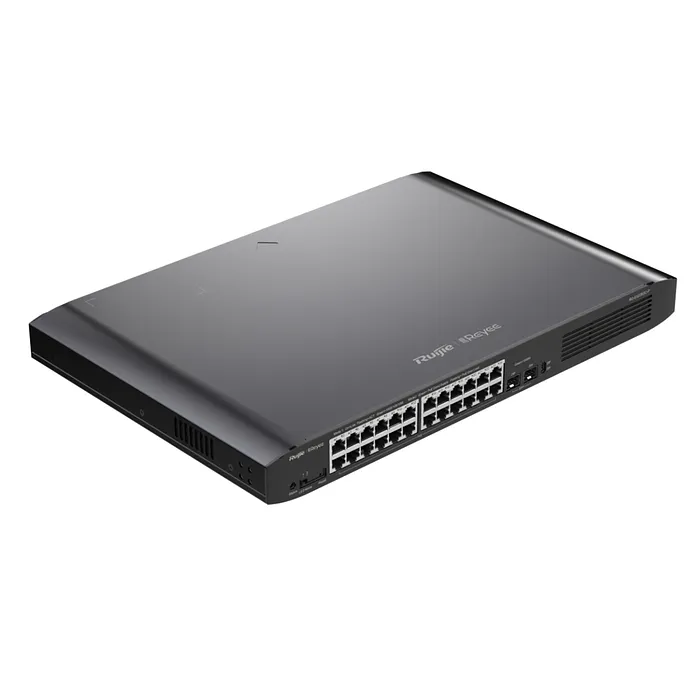 El RG-ES226GC-P cuenta con 24 puertos Gigabit Ethernet, que proporcionan una velocidad de transmisión de datos de hasta 1000 Mbps, lo que asegura una conectividad rápida y eficiente para todos los dispositivos conectados. Además, incluye 2 puertos SFP (Small Form-factor Pluggable) que permiten la conexión de módulos de fibra óptica para extender la red a través de distancias más largas, lo que es crucial en instalaciones donde los dispositivos están alejados de la ubicación del switch.