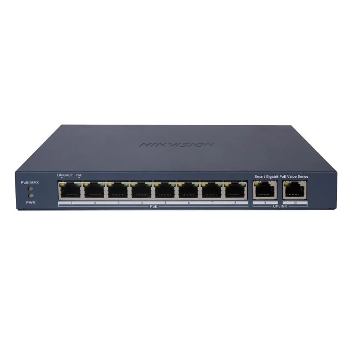 - **Número de Puertos**: 8 puertos PoE+ 1000 Mbps, 2 puertos de uplink 1000 Mbps