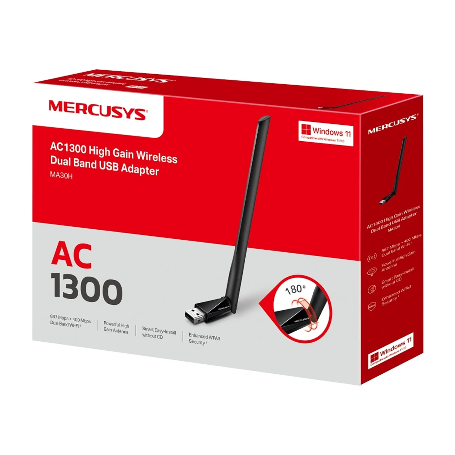 El adaptador USB inalámbrico Mercusys MA30H es una solución de conectividad de alta calidad que permite a los usuarios disfrutar de velocidades de hasta 1300 Mbps. Este dispositivo de doble banda es ideal para aquellos que buscan una conexión estable y rápida, ya sea para juegos en línea, streaming de video en alta definición o descarga de archivos pesados. Su diseño compacto y práctico lo convierte en una opción perfecta para usuarios de escritorio y portátiles que requieren movilidad sin sacrificar el rendimiento.