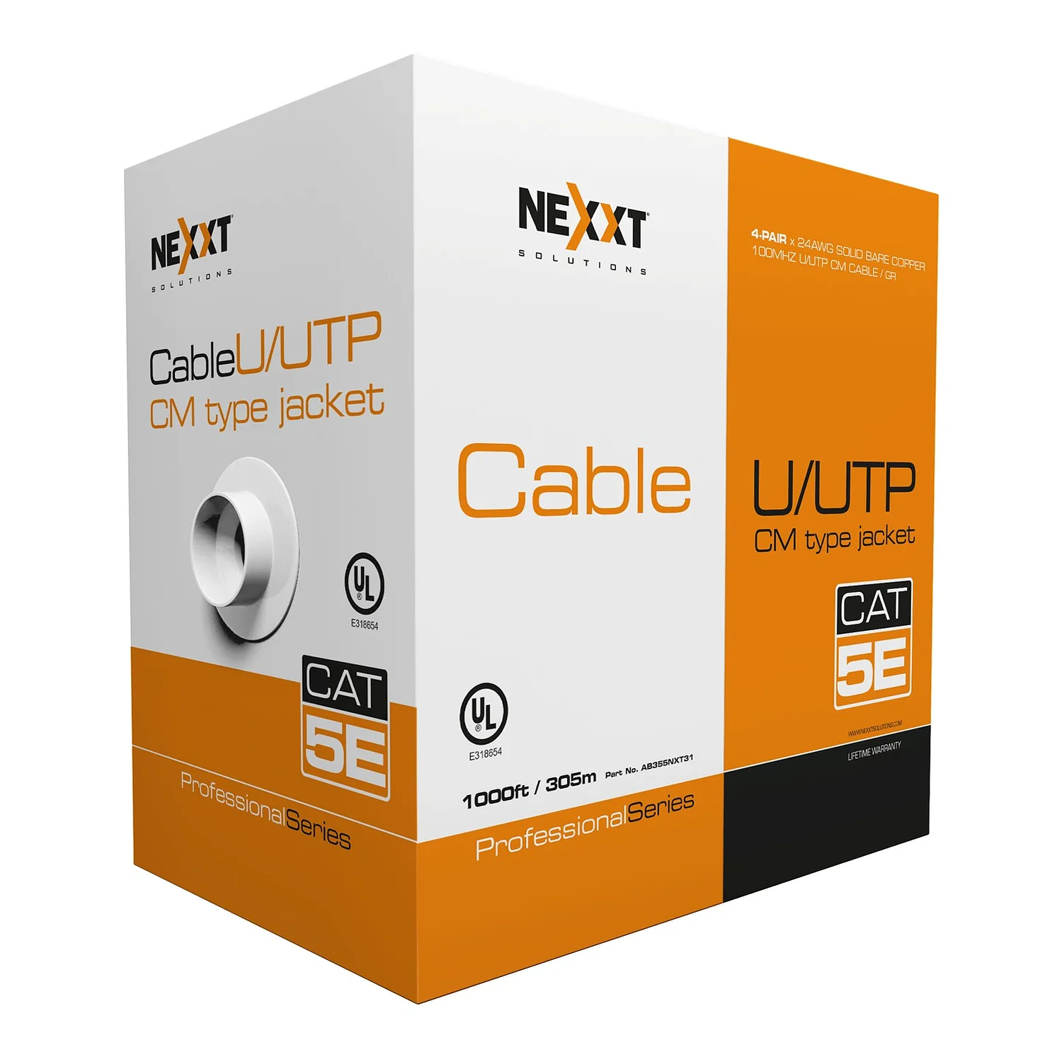 El cable UTP de categoría 5E Nexxt, modelo AB355NXT31, es un componente esencial para la creación de redes de alta velocidad y confiabilidad. Con una longitud de 305 metros (1000 pies) y fabricado con 100% cobre de 25 AWG, este cable está diseñado para satisfacer las demandas de conectividad en entornos interiores.