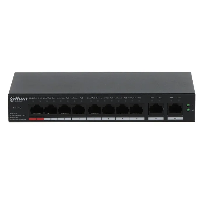 En resumen, el Dahua DH-CS4010-8ET-110 es un switch PoE versátil y eficiente, ideal para instalaciones de videovigilancia y redes de datos, ofreciendo características técnicas avanzadas y una integración sencilla con otros dispositivos de red. Su implementación es fundamental para cualquier instalador que busque soluciones confiables y de alto rendimiento en sus proyectos