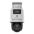 La cámara Hikvision DS-2SE2C400MWG-E/14 TandemVu es una solución avanzada de videovigilancia que combina una cámara panorámica fija de 4 megapíxeles con una cámara PTZ motorizada también de 4 megapíxeles. Esta configuración permite mantener una vista general constante del entorno mientras se realiza seguimiento activo de eventos específicos, lo que la convierte en una herramienta ideal para seguridad profesional en exteriores.