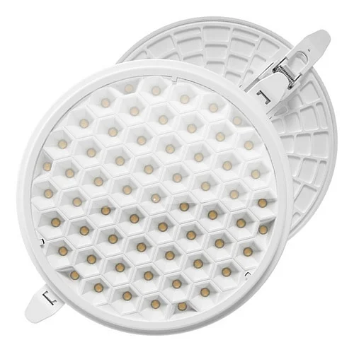 La lámpara cuenta con una potencia de 24W, lo que la convierte en una opción eficiente energéticamente, disminuyendo considerablemente el consumo en comparación con las lámparas tradicionales. Su temperatura de color de 4000K proporciona una luz fría, ideal para ambientes donde se requiere concentración y claridad. La forma redonda y tipo colmena no solo es estéticamente agradable, sino que también optimiza la distribución de la luz, minimizando sombras y logrando una iluminación uniforme en el área instalada.