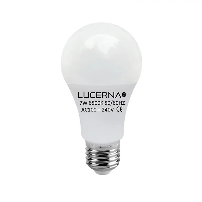 El modelo [7W-B-E27-6.5K] Lucerna está diseñado para operar en un rango de voltaje de 220-240V, lo que lo hace adecuado para la mayoría de las instalaciones eléctricas residenciales y comerciales. Su diseño A60 se adapta perfectamente a las lámparas estándar con rosca E27, asegurando una instalación sencilla y rápida. Este bombillo cumple con las normativas de eficiencia energética y seguridad, lo que garantiza un funcionamiento seguro y confiable.
